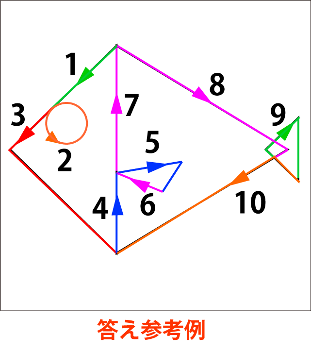 円と直線で構成されたイラストを使って、一筆書き問題です。