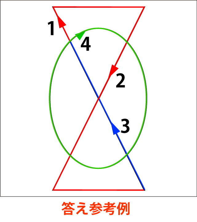 三角と楕円で構成されたイラストを使って、一筆書き問題です。