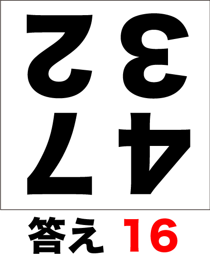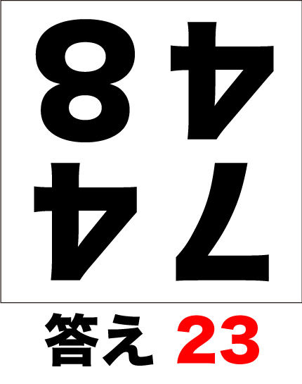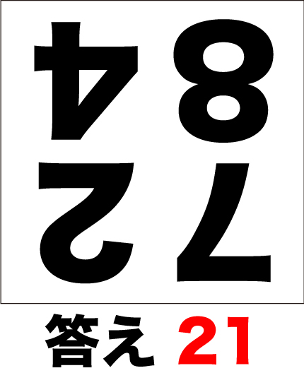 4つの数字を暗算で足し算してみましょう。但し、問題は逆さまになっています。