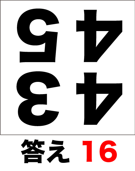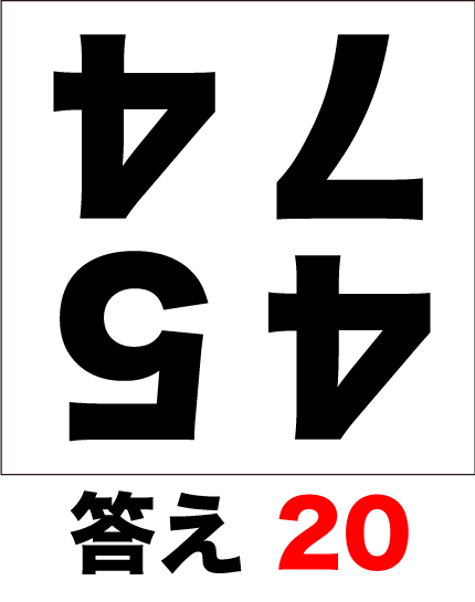 脳トレ計算問題。4つの数字(4574)を暗算で足し算してみましょう。但し、イラストは逆さまになっています。