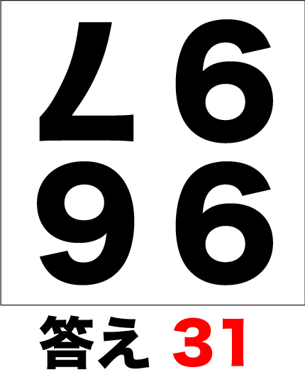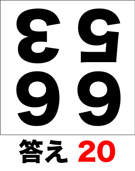 4つの数字を暗算で足し算してみましょう。但し、問題は逆さまになっています。