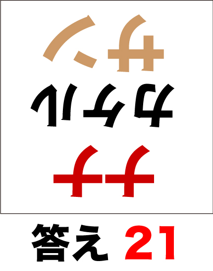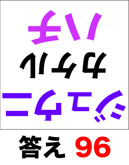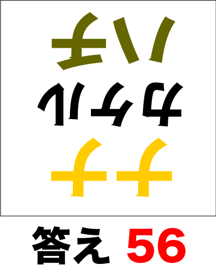 脳トレ計算、掛算の問題(中級)です。通常、掛算は数字と記号で表記されるのですが、「カタカナ」で数式を用意しました。脳トレ計算、掛算中級コースは問題が逆さまになっています。できるだけ暗算で考えてみましょう。