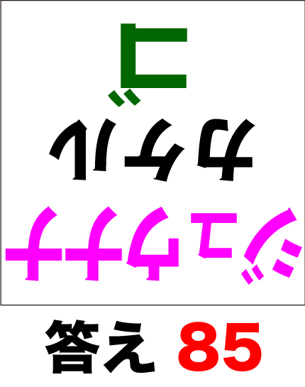 下の脳トレ計算式図をご覧下さい。掛算が「カタカナ」で表記されています。答えはいくつ?