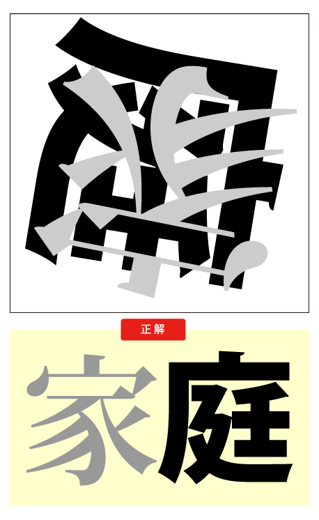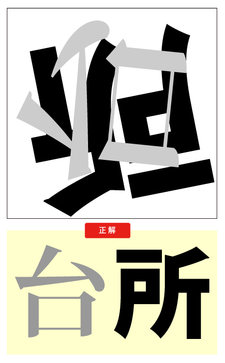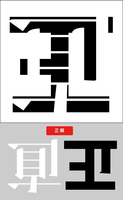 天地逆さまになった2つの漢字が重なっています。2つの漢字を答えなさい。