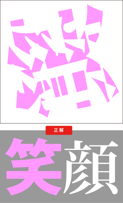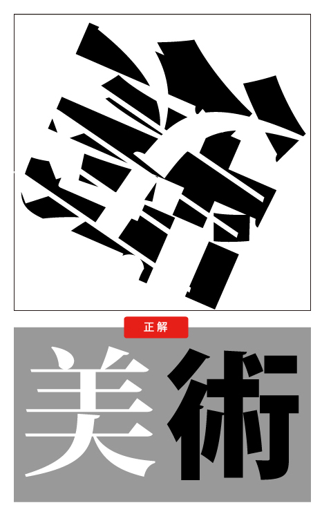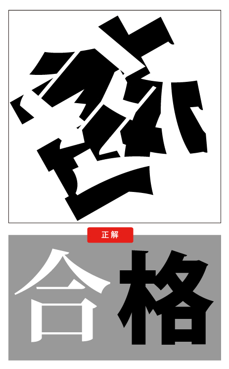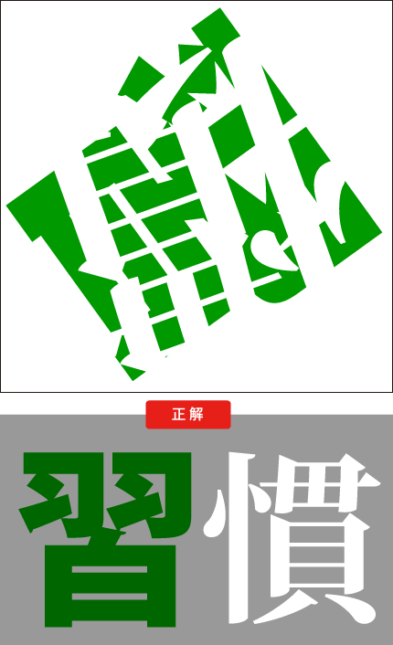 緑の漢字の上に、白い漢字が重なった下のイラスト見て、なんという2つの漢字が重なっているか答えなさい。