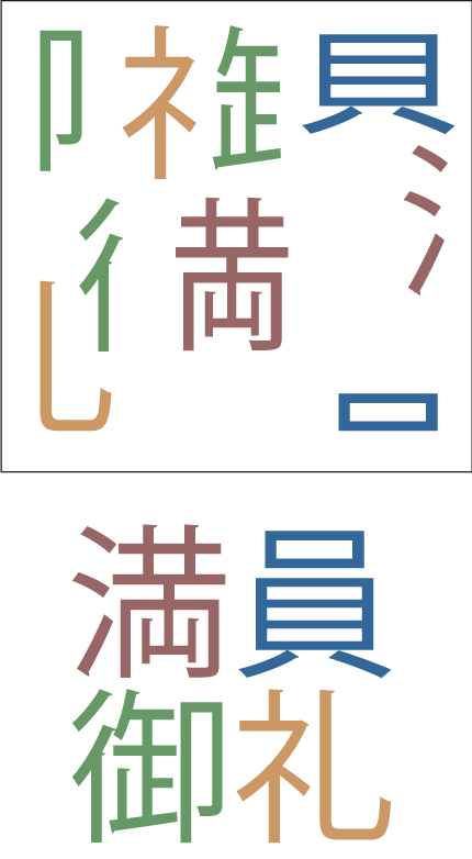 バラバラに分けられた漢字4文字を答えなさい。