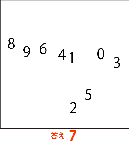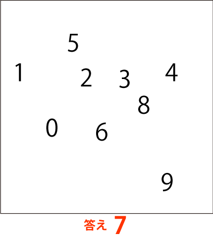 脳トレ問題、足らない数字シリーズから出題。0から9の10個の数字のうち、1つ足らない数字を答えなさい。