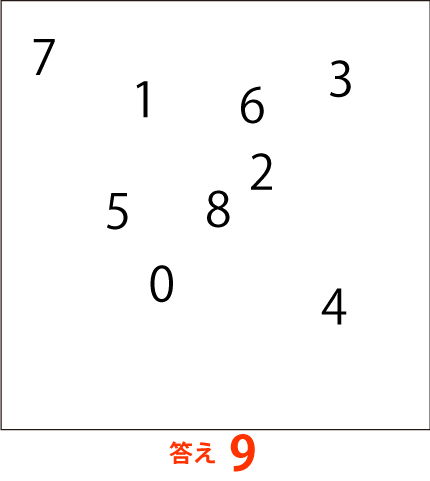 0から9の10個の数字のうち、1つ足らない数字を答えなさい。