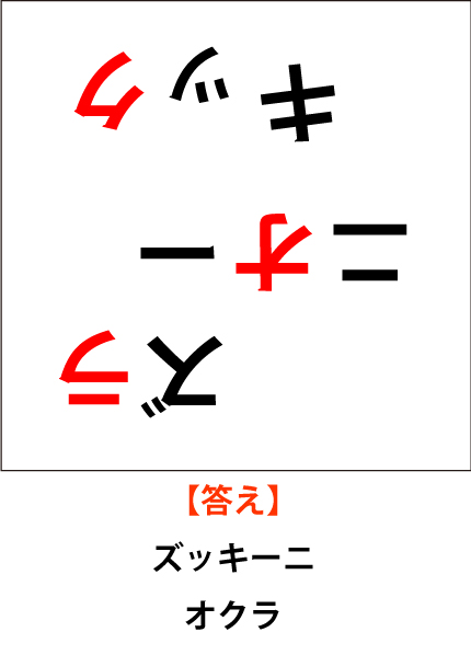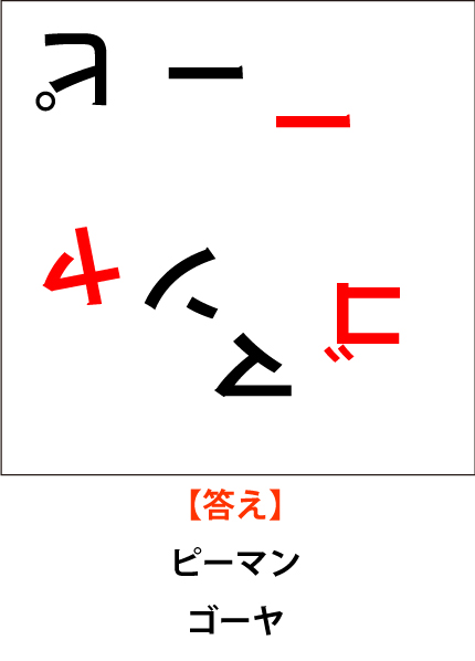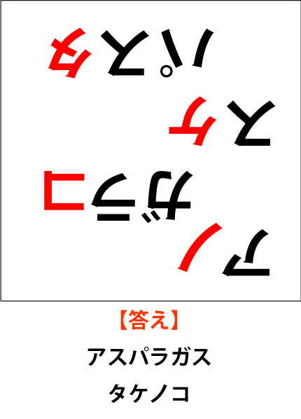 2つの野菜の名前が画面のカタカナの中にあります。2つの野菜の名前を答えなさい。